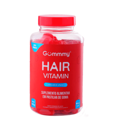 Gummy Vitamina Hair Vitamin Cabelos, Unhas E Pele Morango 60 Unidades 180g Plastico Rojo
